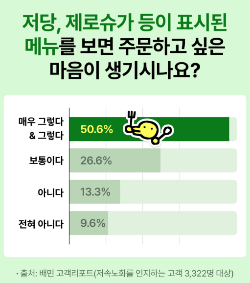 이 때문에 배달의 민족에 따르면, ‘저당·제로·칼로리다운’ 등 라벨링을 활용한 메뉴는 가게 매출에도 직접 영향을 주고 있으며, 관련 키워드를 활용하는 점포는 최근 2년간 최대 9배 증가했다.