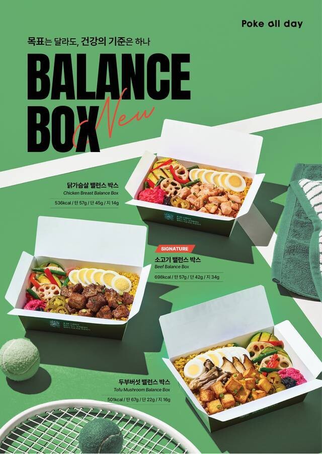 프리미엄 포케 브랜드 포케올데이는 최근 신메뉴 ‘밸런스 박스(BALANCE BOX)’ 5종을 출시하며 웰니스 식단 라인업을 강화했다. ‘목표는 달라도, 건강의 기준은 하나’라는 슬로건 아래 선보인 이번 신메뉴는 탄수화물·단백질·지방의 균형을 기준으로 설계돼, 벌크업·컷팅·유지 등 운동 목적에 따라 선택할 수 있도록 구성된 것이 특징이다.