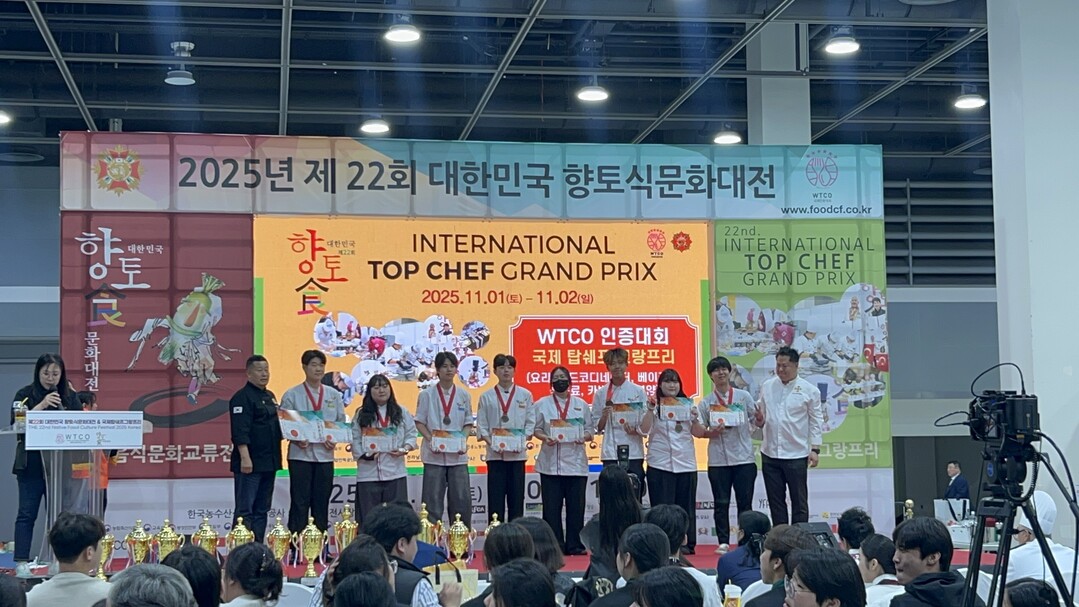 이번 향토식문화대전의 메인행사였던 국제탑쉐프그랑프리 대회에는 라이브 12팀, 전시 1팀으로 구성된 한국호텔관광실용전문학교(이하 한호전) 호텔조리과 재학생들이 출전하여 전원 수상하는 쾌거를 이뤘다. 한호전 호텔조리과는 매년 국내 뿐 아니라 세계적인 대회에 출전하여 높은 순위를 기록하는 것으로 유명한데, 올해 이루어진 제 22회 대한민국 향토식문화대전의 국제탑쉐프그랑프리에서도 활약한 것이다.